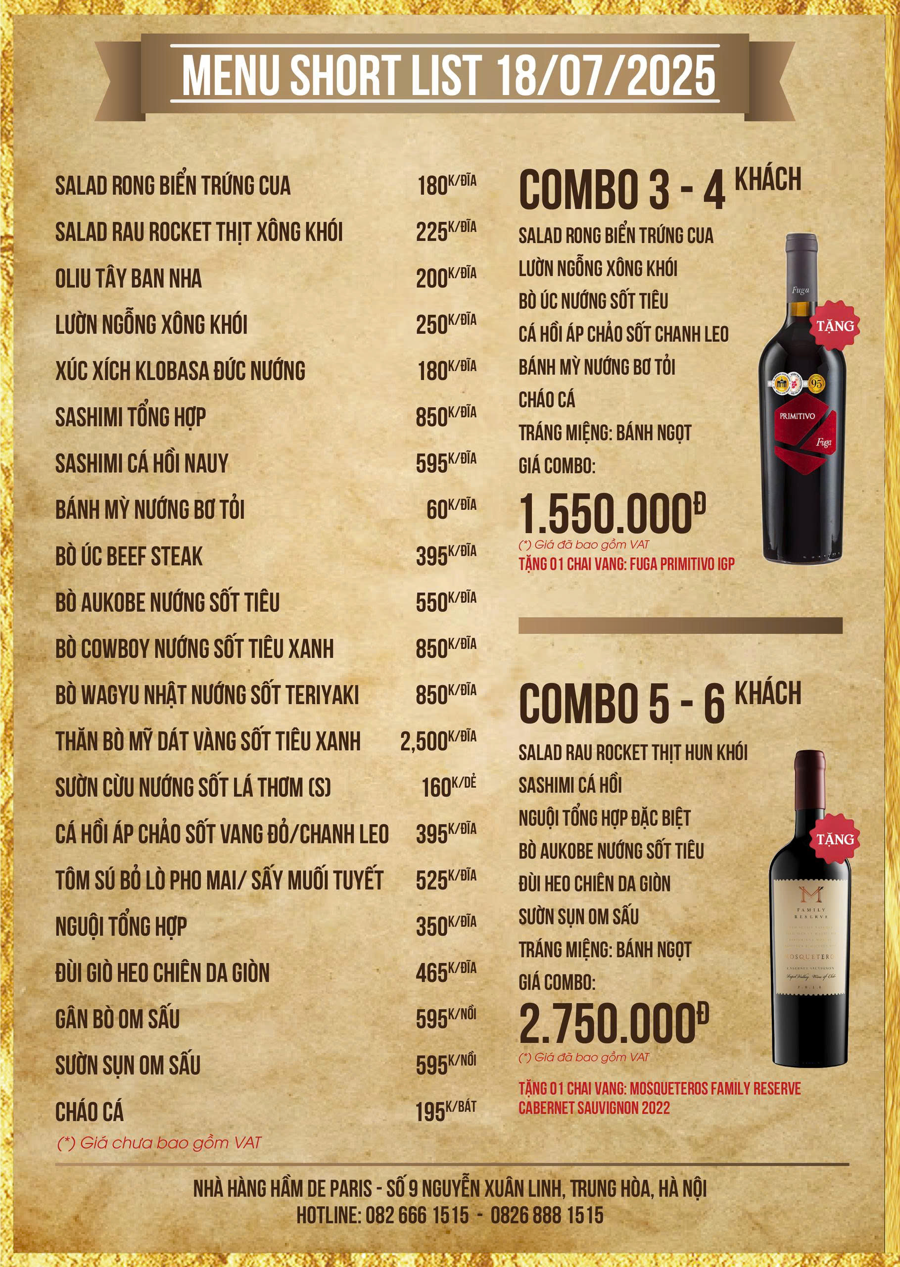 TẶNG 01 chai vang khi gọi COMBO ẩm thực đặc biệt: