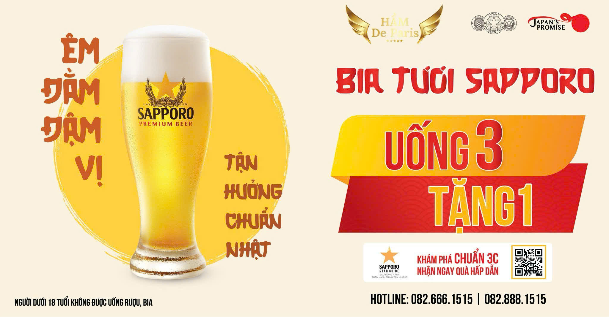 BIA TƯƠI SAPPORO – UỐNG 3 TẶNG 1